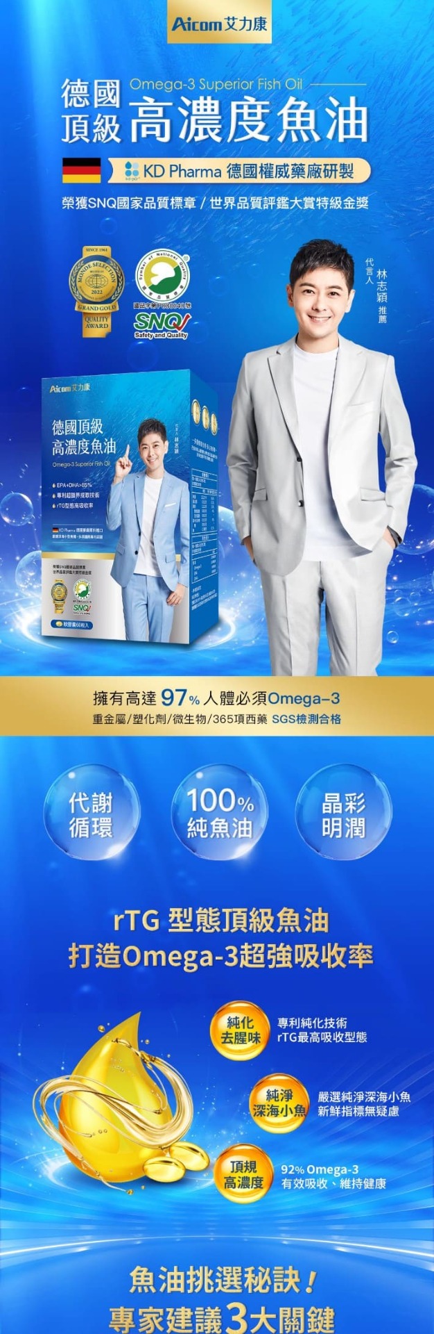 商品名稱:Aicom艾力康-頂級高濃度魚油